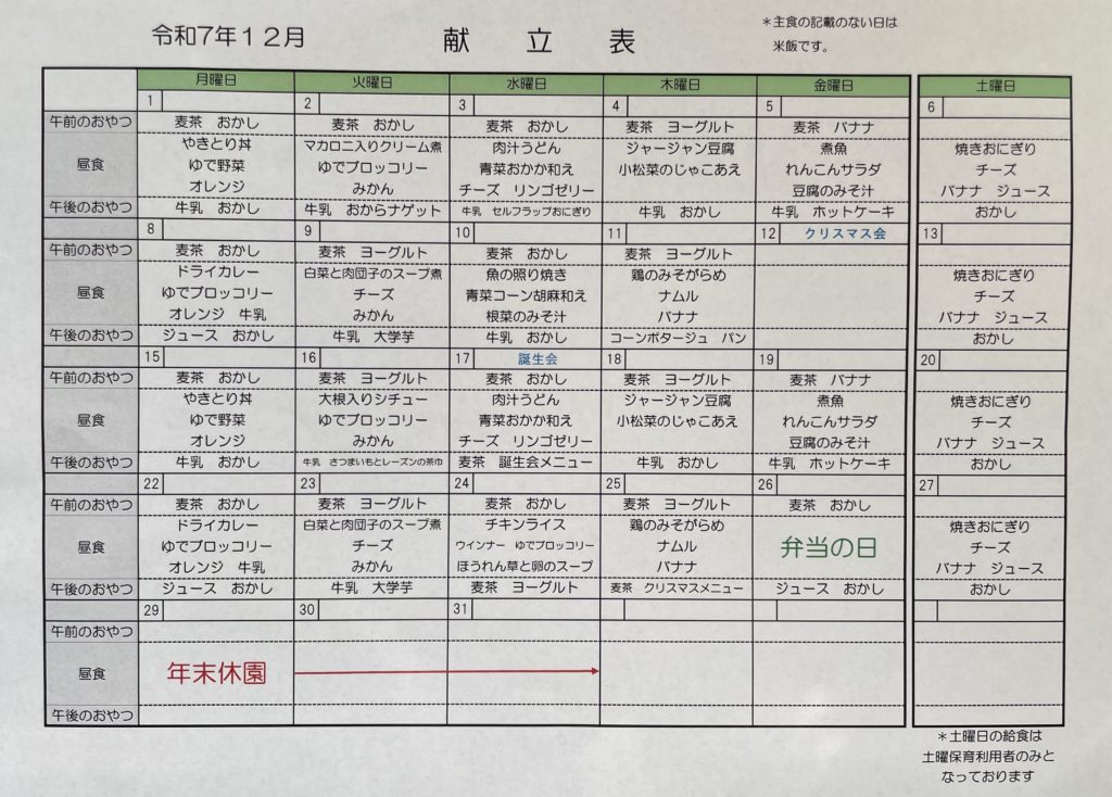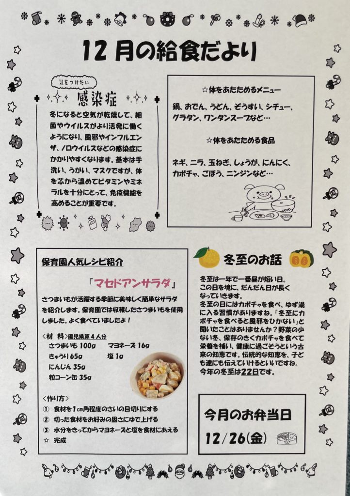 令和7年 12月 給食だより | ひよりキッズホーム保育園