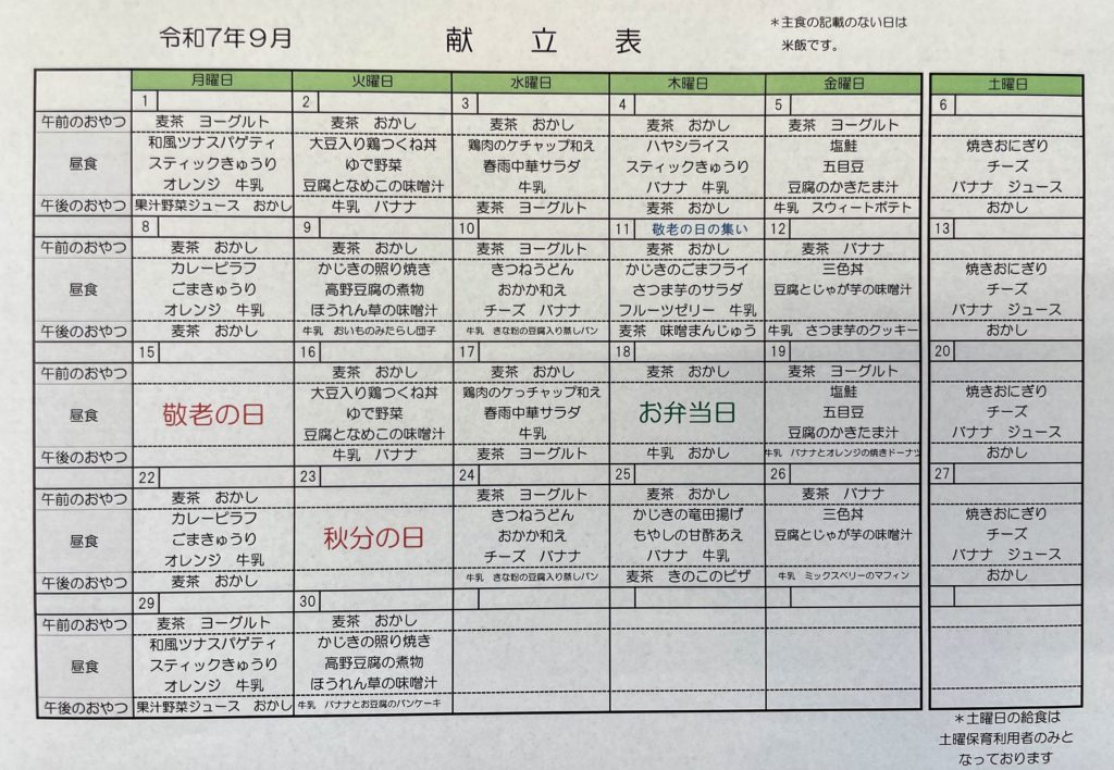 令和7年 9月 給食だより | ひよりキッズホーム保育園