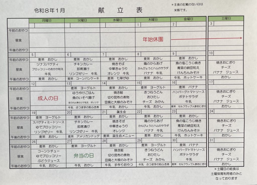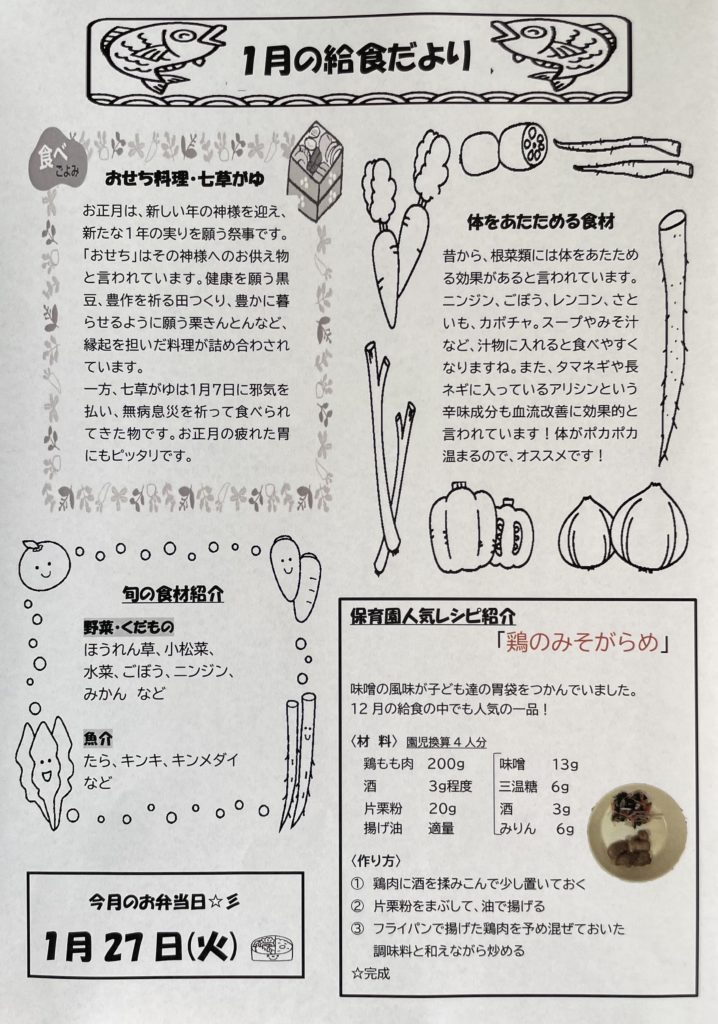 令和8年 1月 給食だより | ひよりキッズホーム保育園