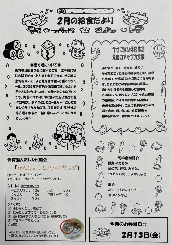 令和8年2月 給食だより | ひよりキッズホーム保育園
